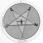 Ibland används pentagrammet inverterat för att symboliskt beskriva katabasis och det inverterade pentagrammet kan, anser jag, i mångt och mycket kopplas just till 5 i tarotlekens lilla arkana.
