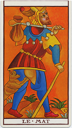 I den medeltida Marsielleleken är narren en äldre person. Han bär gycklardräkt och har halva rumpan bar. Att visa rumpan bar är en symbolhandling som säger “jag hyser ingen respekt för dig”. Här är det hans följslagare hunden som slitit sönder byxan och hjälper narren att strunta i normen.