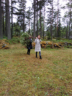 Eftersom ritualplatsen ligger några kilometer bort fäste vi björken på mitt takräcke och gav oss av. Väl framme vid ritualplatsen skapade vi cirkeln genom att kalla in krafterna och laddar den med galdrar. Sen grävde vi en hålgrop, offrade örter och smyckade med blommor, blåbär och annat som växte i närheten.
